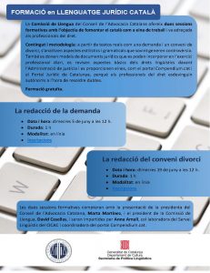 La Comissió de Llengua del Consell de l’Advocacia Catalana ofereix dues sessions formatives en línia, als advocats i advocades de Catalunya, amb l’objectiu de fomentar el català com a eina de treball.