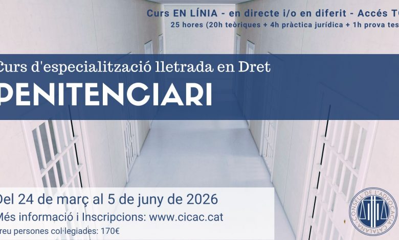Curs d’especialització lletrada en dret Penitenciari 2026