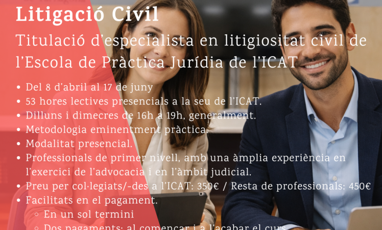 Titulació d’especialista en litigiositat civil de l’Escola de Pràctica Jurídica de l’ICAT.