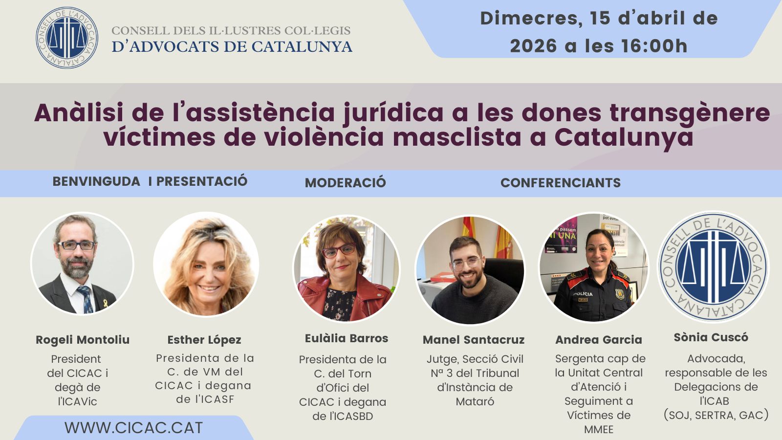 WbinCICAC: Assistència jurídica a les dones transgènere víctimes de violència masclista a Catalunya