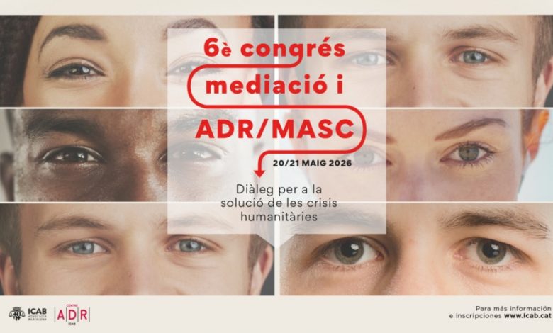 El Centre ADR-ICAB celebrarà els dies 20 i 21 de maig de 2026, presencialment a la seu de l’Il·lustre Col·legi de l’Advocacia de Barcelona el VI Congrés ADR/MASC 2026.