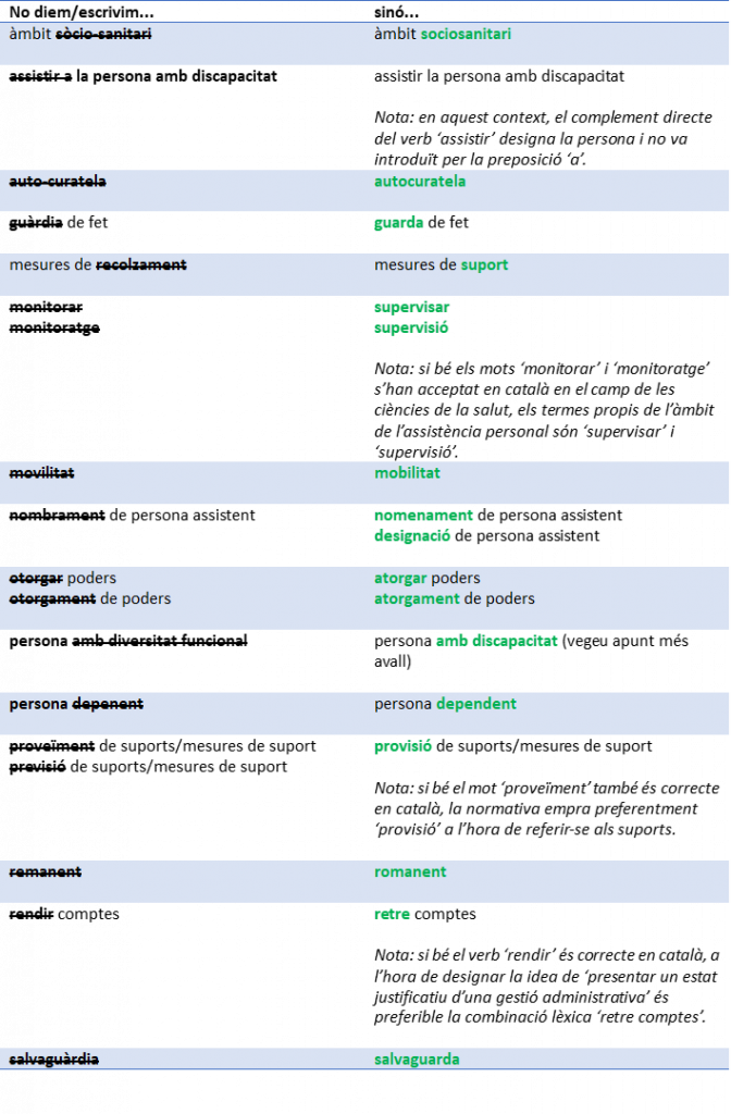 Per a més informació sobre les denominacions adequades i no adequades per fer referència a les persones amb discapacitat, podeu consultar la Guia de llenguatge inclusiu en el tractament de persones amb discapacitat.