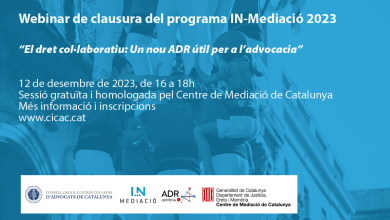 Vídeo. Webinar de clausura del programa In-Mediació 2023. El dret col·laboratiu: Un nou ADR útil per a l’advocacia